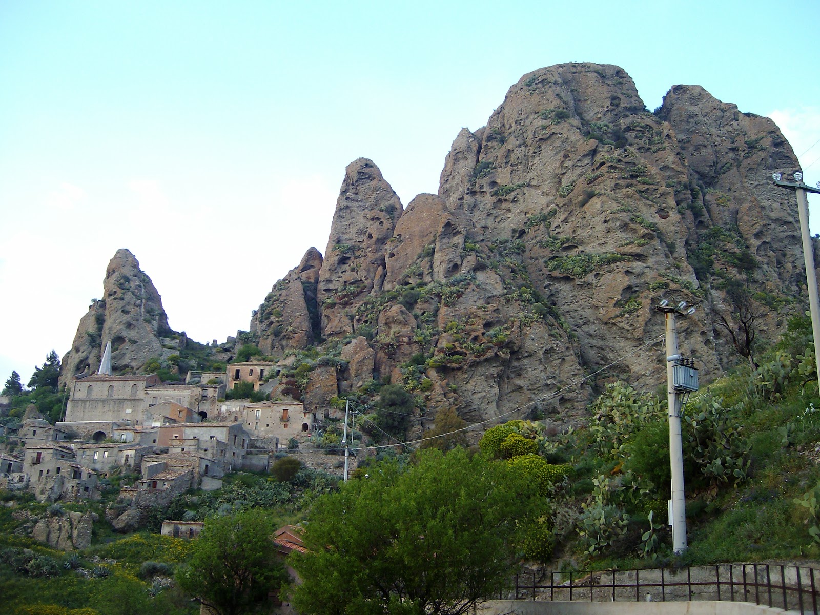 My last Sunday, before coming back to the states, we went to see an old abandoned town called Pentedattilo. It was founded way B.C. by the Greeks. Then the Byzantines took over. In fact, the name derives from the Byzantine word Penteda'ktilos meaning five fingers, because of the rock formations.